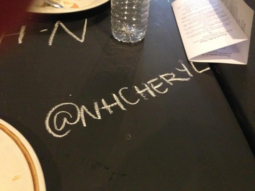 (I loved the chalkboard tabletops, and was happy to write my Twitter handle on there. Seemed like all of the tables in the restaurant were clean when we walked in, and I'm not sure if that's because they had been wiped down or because no one else had taken advantage of the chalk on the table that day.)